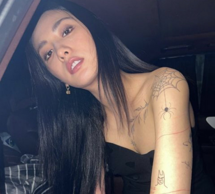 Ia tampil mempesona dengan mengenakan balutan dress mini hitam dengan potongan one piece dan heels warna senada. Nana seolah ingin memamerkan tato yang menghiasi tubuhnya dari bahu hingga pergelangan kaki.