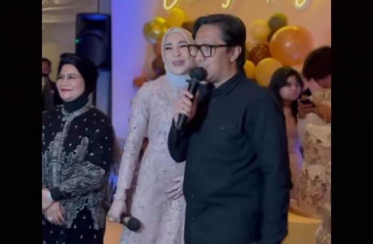 5. Andre Taulany sempat menyapa para tamu undangan yang sudah menyempatkan hadir di acara ultah istrinya. Andre juga terlihat bernyanyi untuk istri tercinta.