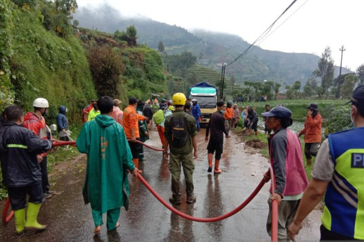 “Hari ini warga dan relawan serta unsur dari BPBD, TNI, dan Polri bergotong-royong menyingkirkan puing-puing akibat longsor,” jelasnya.