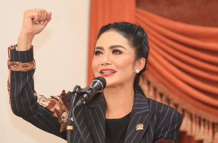 Krisdayanti berbagi pengalamannya sebagai anggota DPRI RI saat memberikan kuliah umum.
