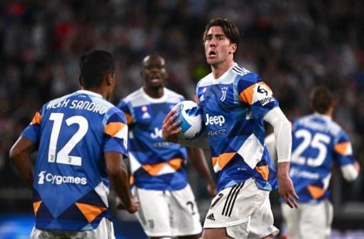 Dusan Vlahovic cetak gol penyama kedudukan saat Juventus ditahan imbang Bologna 1-1. (AFP)
