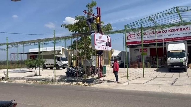 Tak hanya itu, pembongkaran juga dilakukan terhadap papan nama yang memuat gambar Presiden